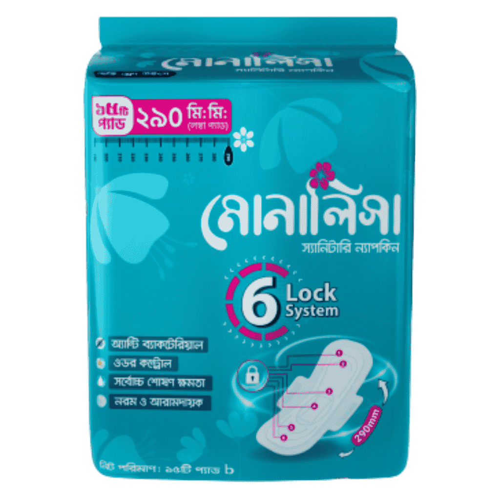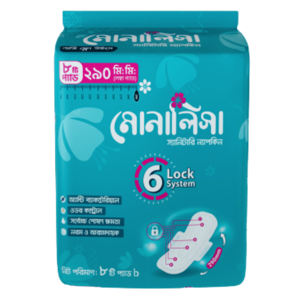 মোনালিসা-র উন্নত সিক্স লক প্রটেকশন সিস্টেম দ্রুত শোষণ করে এবং লিকেজ প্রতিরোধ করে। এই লিকেজ-ফ্রি মোনালিসা চলাফেরা বা ঘুমানোর সময়ও তোমাকে নিরাপদ রাখে। যার ফলে দিনের যেকোনো মুহূর্তে তুমি থাকবে সবসময় সুরক্ষিত।