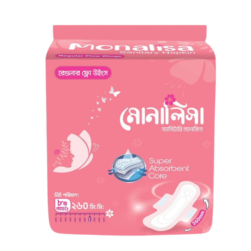 মোনালিসা স্যানিটারি ন্যাপকিনে রয়েছে ২৯০ মিলিমিটার চওড়া উইংস, যা প্যান্টির চারপাশে শক্তভাবে আটকে থাকে। এতে ন্যাপকিন নড়াচড়া করে না, সাইড লিকেজ কমে এবং দীর্ঘ সময় ও ব্যস্ত দিনেও থাকে স্থিতিশীল ও নির্ভরযোগ্যতা।